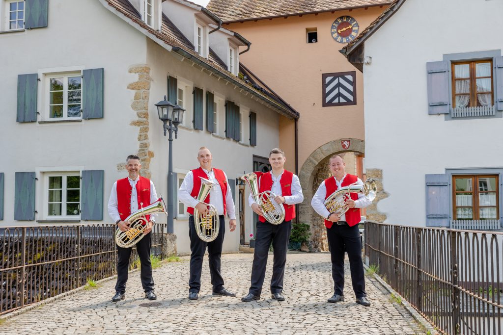 v.l.n.r: Alexander Stihl (Manager), Tobias Schwarz, Markus Frank (Kapellmeister) und Pascal Biehler